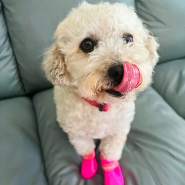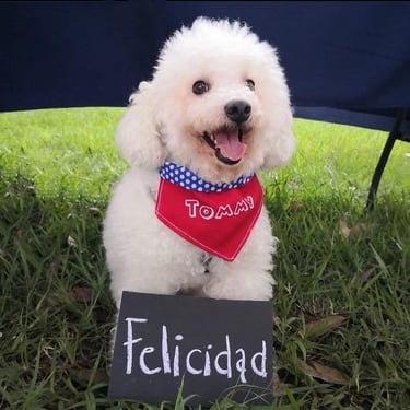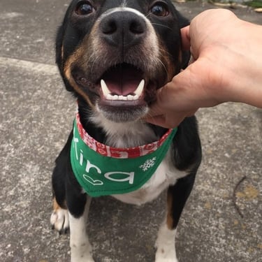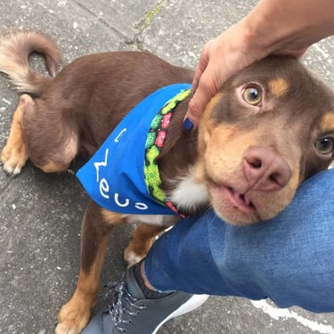 Love Puppies nació en 2018 mientras rescataba perritos y buscaba ayudarlos a encontrar un hogar. Creé dos bandanas con nombres grandes y llenos de color: Zeus y Kira. La idea era simple: que las personas no vieran solo un perrito más, sino que lo recordaran por su nombre.